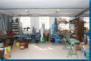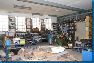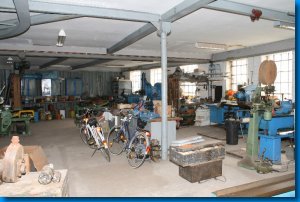 Die drei Werkstätten haben eine Gesamtfläche von ca. 340 qm plus einer 100 qm Unterkellerung. Die Schreinerei hat alle üblichen zur Holzbearbeitung üblichen Maschinen. Die Schweißwerkstatt ist ebenso sehr umfangreich eingerichtet, für die Stahl- und Aluminiumschweißung und Brennschneidung. Auch die Maschinenwerkstatt hat zwar alte, aber sehr brauchbare und funktionstüchtige Maschinen zur Metallbearbeitung. Zum Beispiel: Hobeln, Fräsen, Drehen bis 6 Meter Länge, Schleifen, Stoßen, Pressen, Nieten, usw.