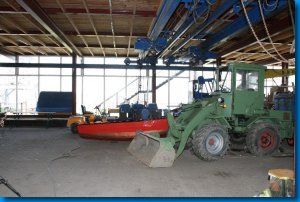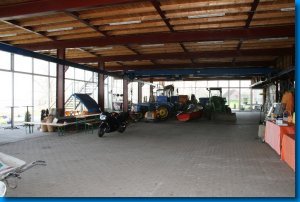 Es gibt ein paar hundert große und kleine Maschinen, E-Werkzeuge, Hydraulik und Luftdruckwerkzeuge. Die neugebaute, ca. 650qm große, nach außen komplett mit Sicherheitsglas verglaste Halle, hat zwei Laufkräne mit je zwei Hubzügen. Die befahrbaren Öffnungen in die Halle, haben eine Breite von ca. 7 Meter, 6 m, 3 m und 2,4 m. Ebenso 3 normale Eingangstüren. Alle in Sicherheitsglas ausgelegt.